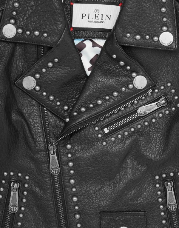 Kids Philipp Plein Clothing | Leather Biker Jacket Smile Black