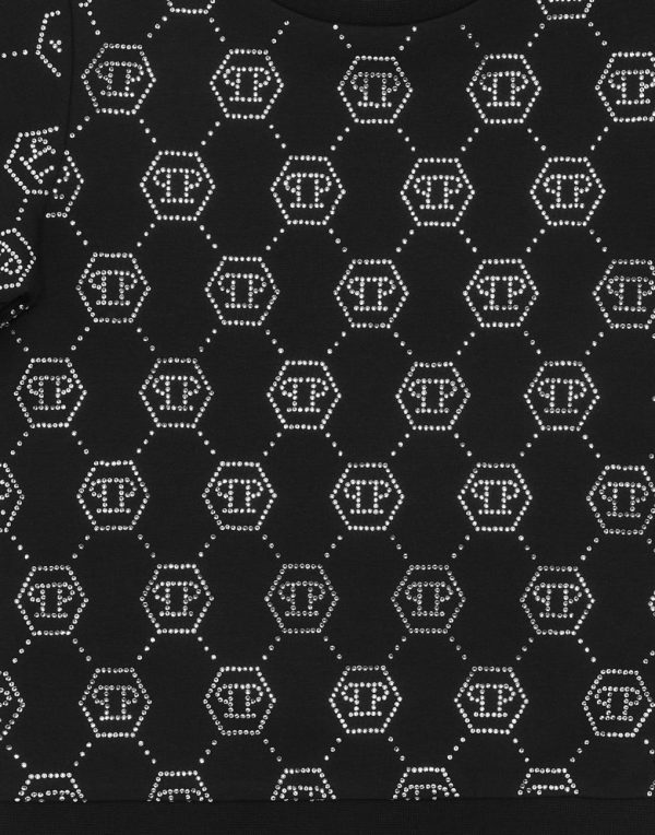 Kids Philipp Plein Clothing | Sweatshirt LS Strass Monogram Black
