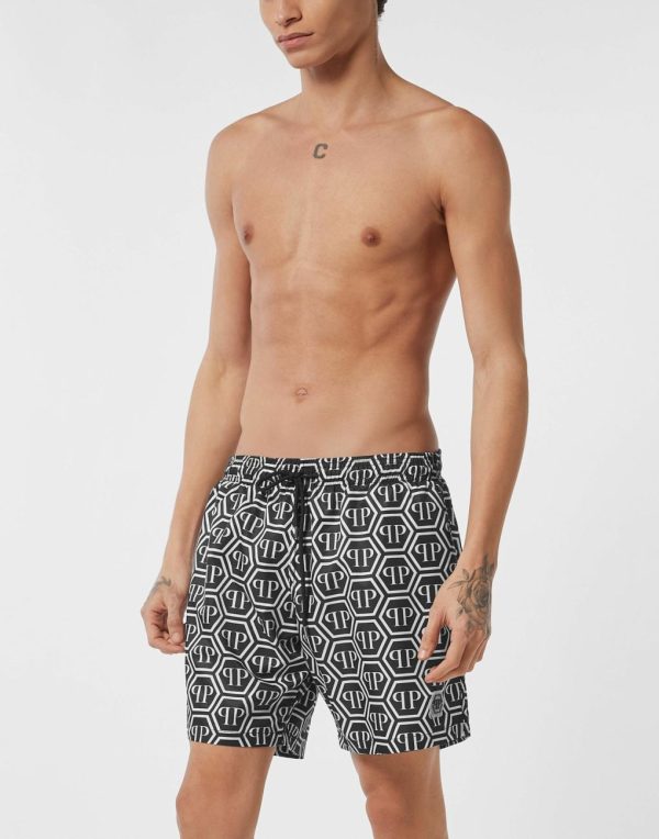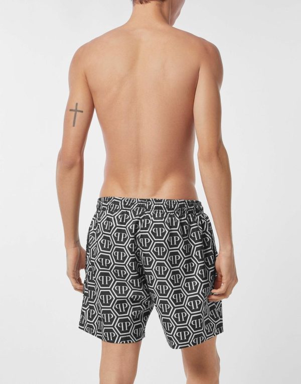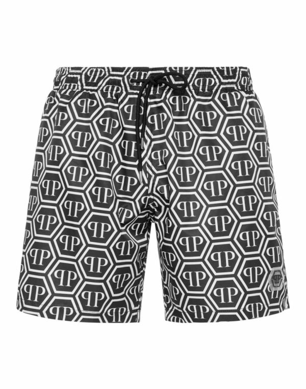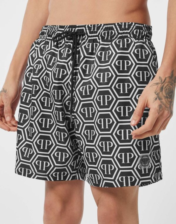 Men Philipp Plein Beachwear | Nylon Jogging Shorts Monogram Black