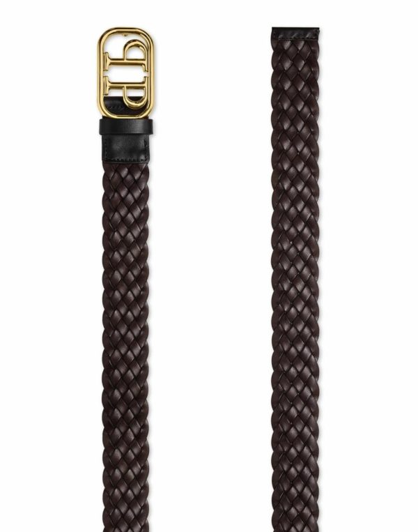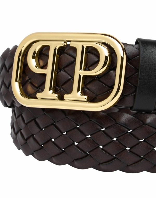 braided logo buckle belt from PHILIPP PLEIN with gold-tone hardware, logo buckle fastening and adjustable fit.