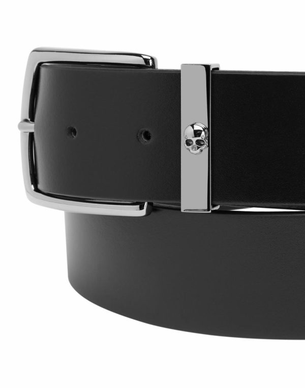 Add some Plein style to your outfit with this leather belt. The item features a metal tongue buckle. Leather lining. Height: 4 cm.