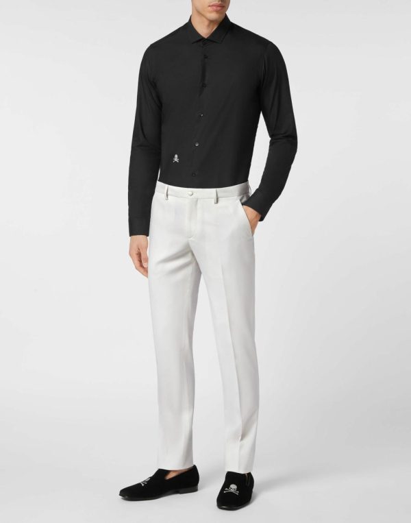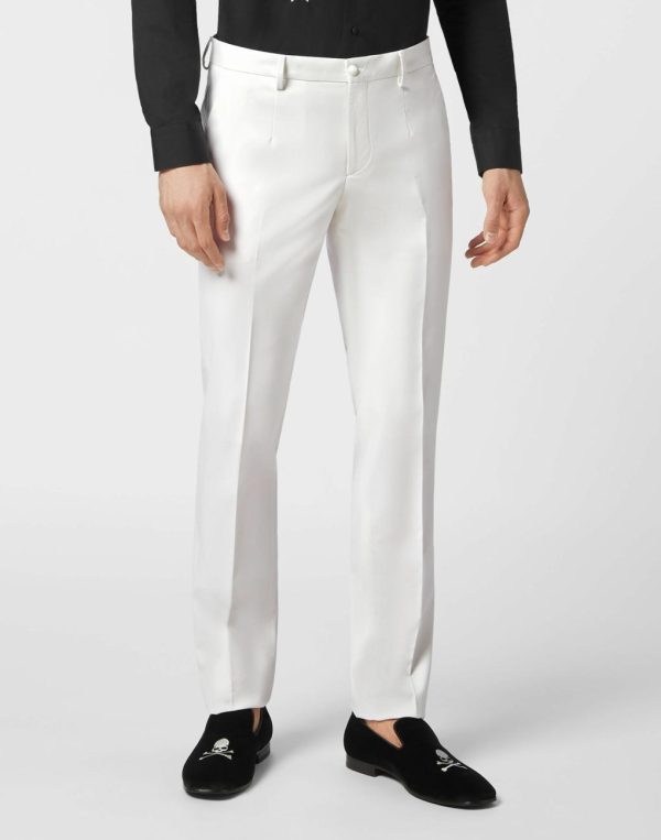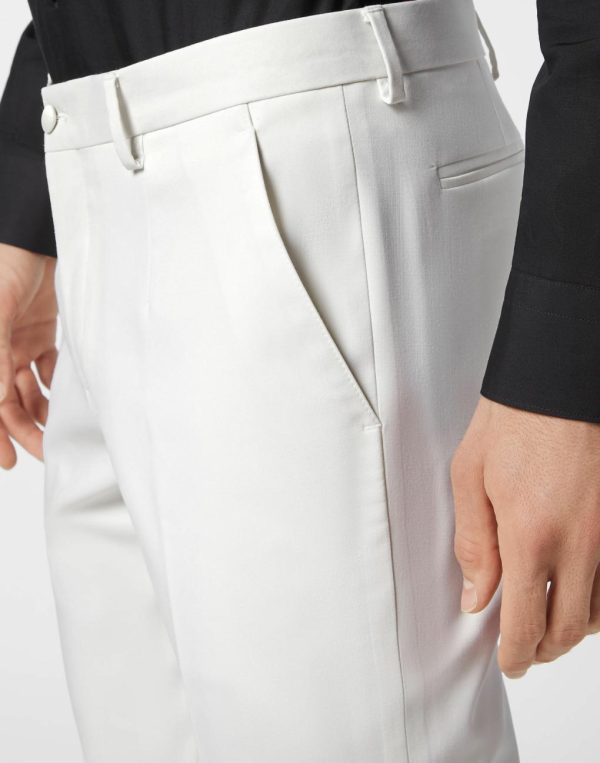 Add a dash of Plein couture to your look. Check out these wool flat front trousers and discover their features.