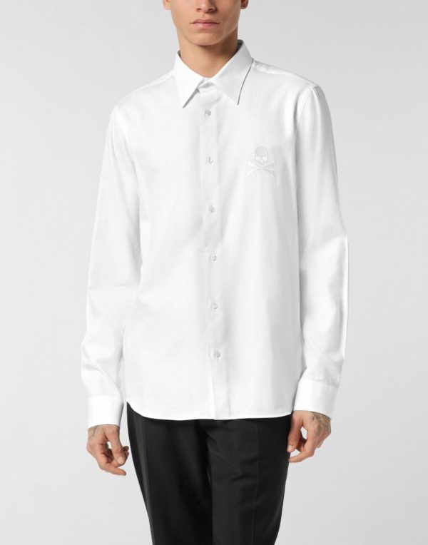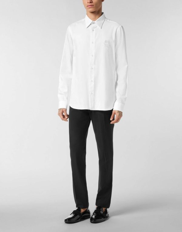 Men Philipp Plein Shirts | Regular Fit Shirt Herringbone White