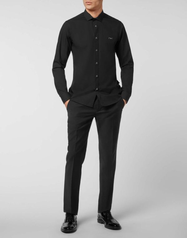 Add a dash of uniqueness to your look with this cotton poplin shirt with hidden placket. The box pleat is decorated with tiny Skull&Bones studs. A logoed metal badge sewn at left chest highlights that this is a Limited Edition garment. Spread collar. Rounded bottom. Fit: Sugar Daddy.