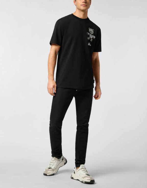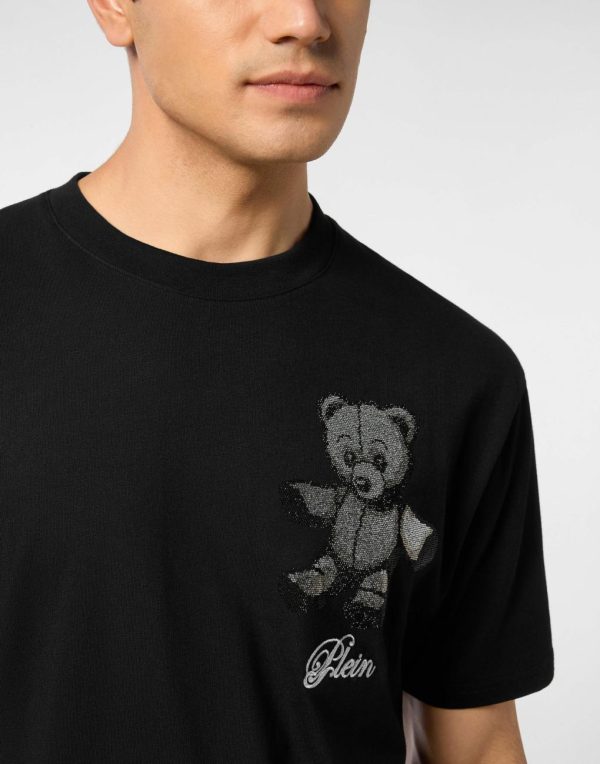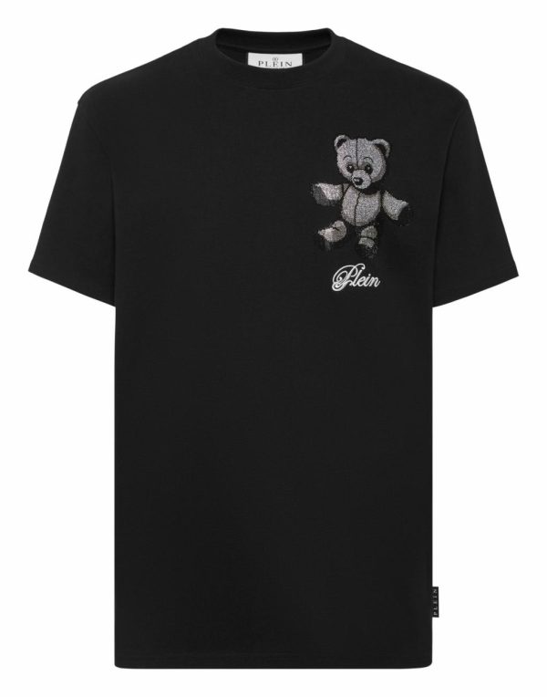 Men Philipp Plein T-Shirts | Embroidered Round Neck T-Shirt Strass Teddy Bear Black