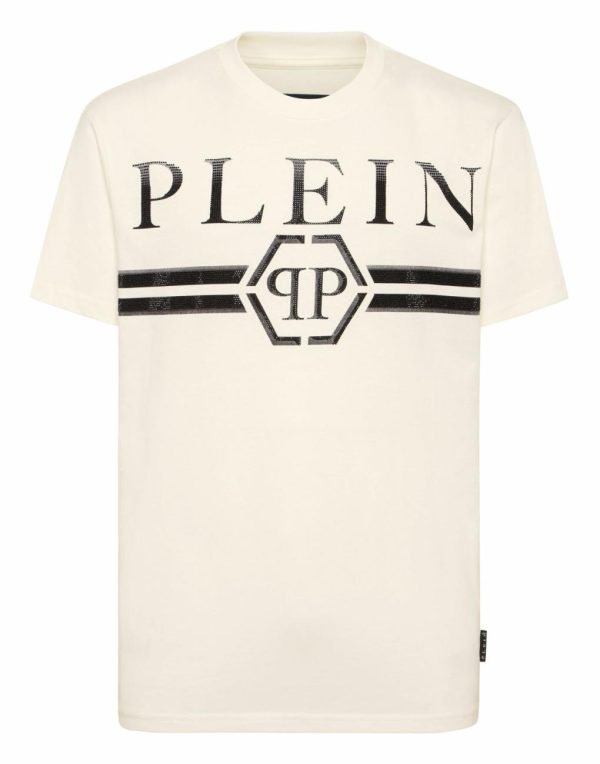 Men Philipp Plein T-Shirts | Round Neck T-Shirt Full Of Stones Stripes Off White