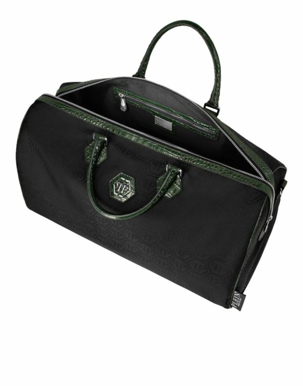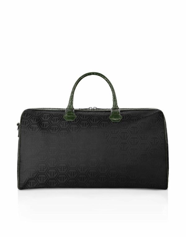 Personalize your travels with the uniqueness of this nylon and leather travel bag.