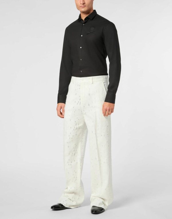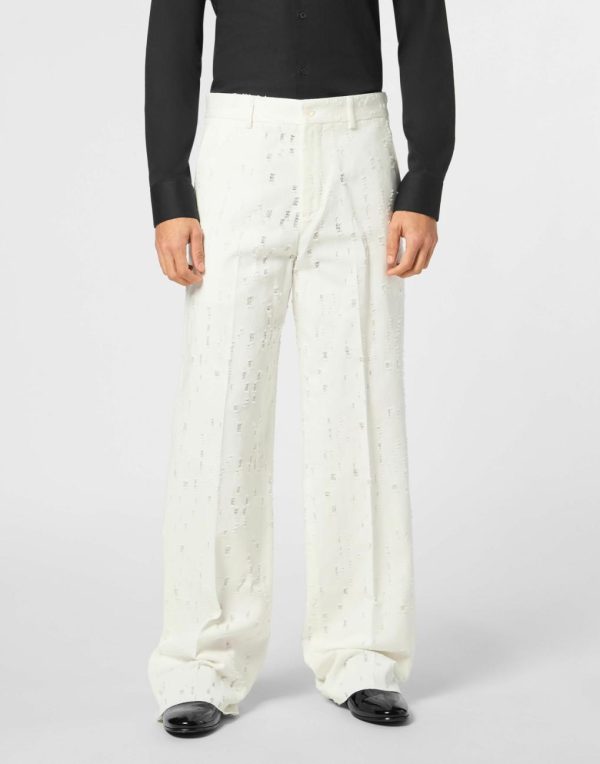 Add a dash of Plein couture to your look. Check out these flat front trousers and discover their features.