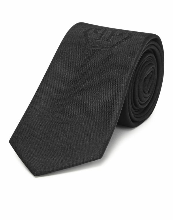 Men's Philipp Plein Black Silk Tie with Hexagon Jacquard quantity