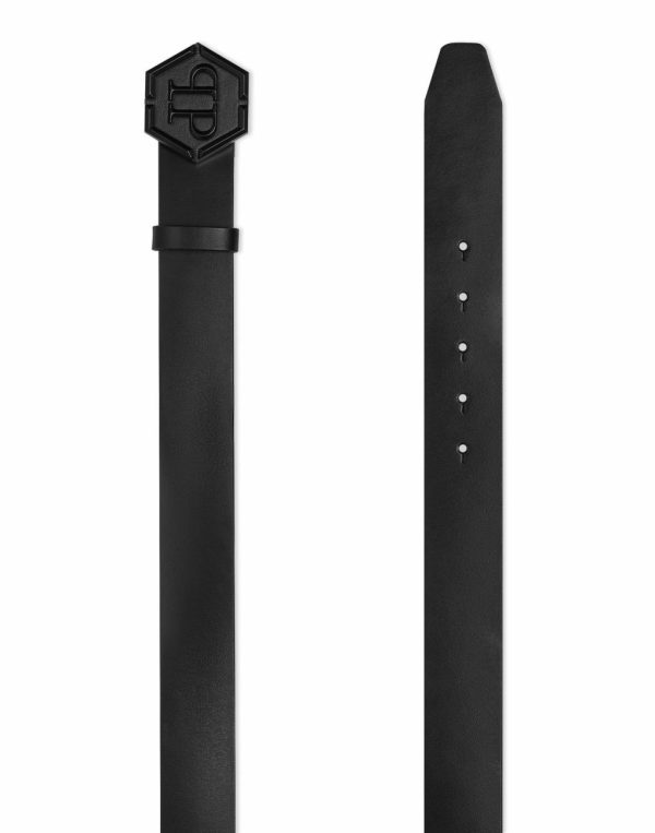 Men’s Philipp Plein Hexagon Buckle Leather Belt