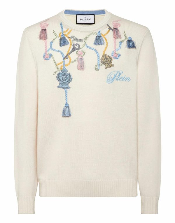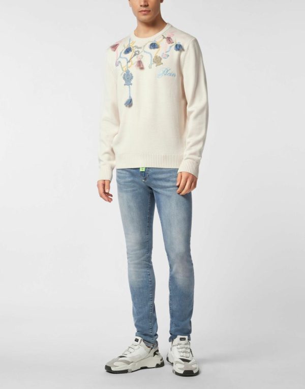 Experience the cutting-edge design philosophy that defines Philipp Plein’s distinctive aesthetic with this premium merino wool crewneck pullover.