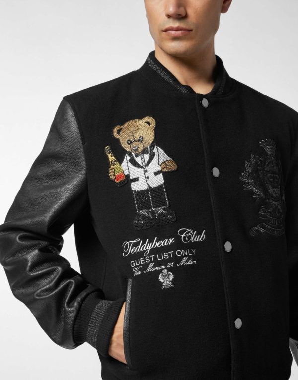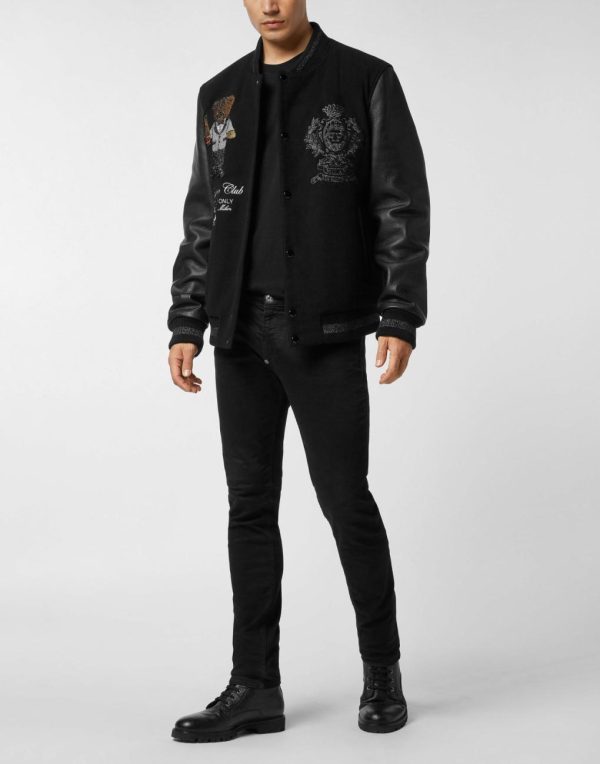 Elevate your style with this standout designer varsity jacket that makes a bold statement.