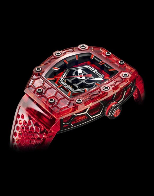 Measuring 55 x 45 mm, the Crypto King Hexagon features a double-layered, open dial showcasing the recognizable Hexagon logo with the double PP emblem. The see-through caseback and double-domed sapphire crystal with anti-reflective coating provide a captivating view into the intricate mechanical movement.