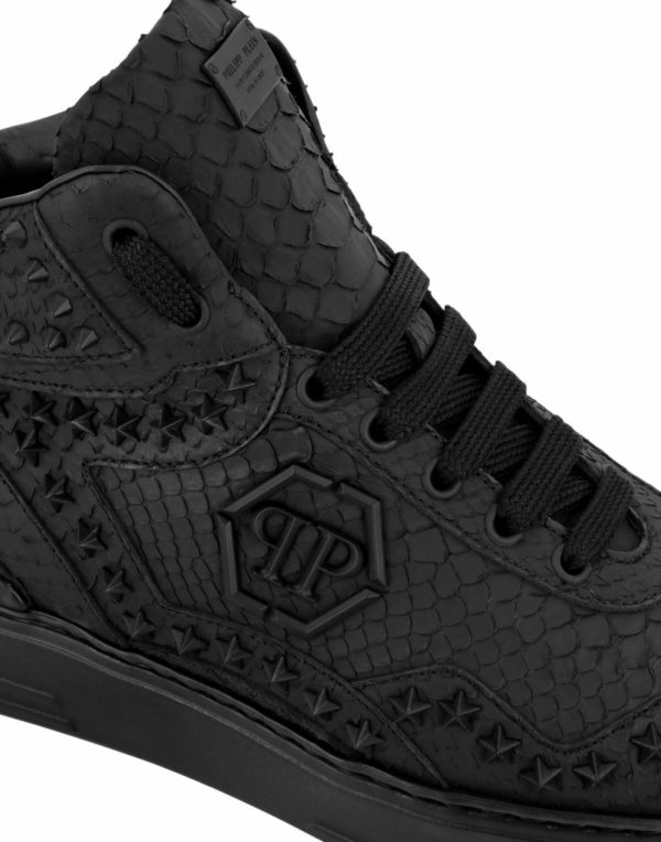 Elevate your casual style with these premium python leather mid-top sneakers featuring exceptional craftsmanship and eye-catching details.