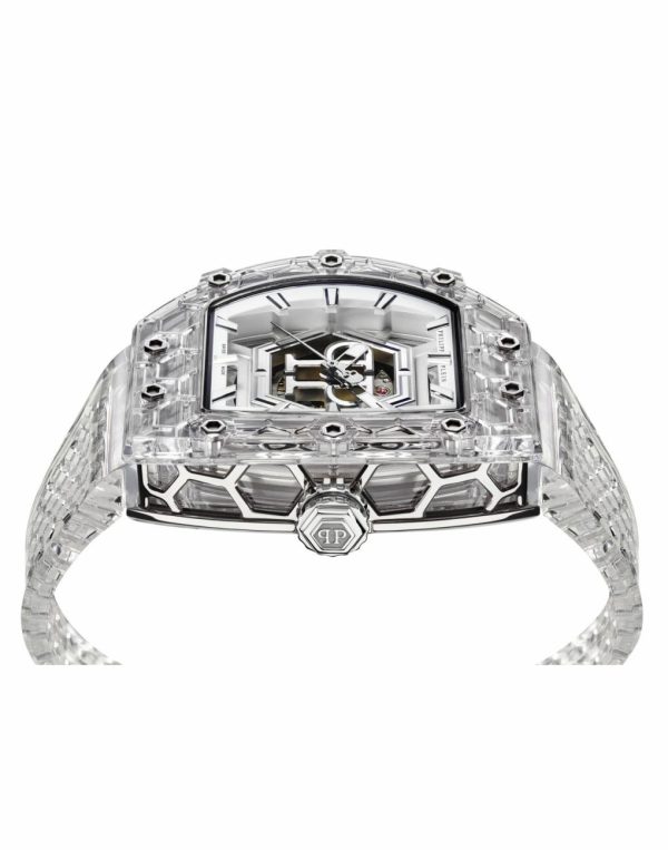 The PHILIPP PLEIN Crypto King Hexagon embodies the perfect harmony of functionality, architecture, and design. Its distinctive features include a tonneau-shaped case adorned with the brand’s signature hexagonal motif, a cutting-edge strap, and a powerful Swiss automatic movement. The impeccable craftsmanship and robust case construction uphold the highest standards of Swiss watchmaking precision.
