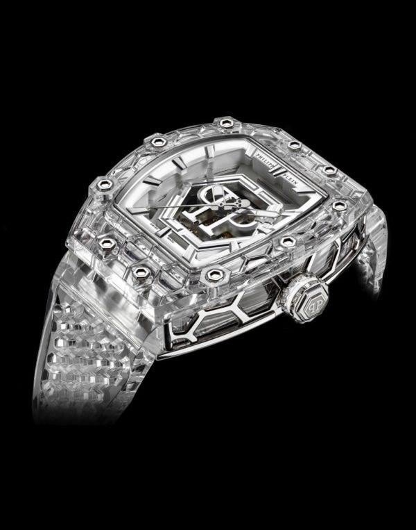 Measuring 55 x 45 mm, the Cryptoking Hexagon boasts a double-layered, open dial showcasing the recognizable Hexagon logo with the double PP emblem. The see-through caseback and double-domed sapphire crystal with anti-reflective coating provide a mesmerizing glimpse into the intricate workings of the timepiece.