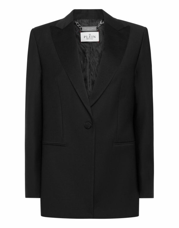 ● Shiny satin peak lapels