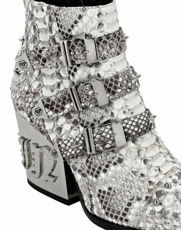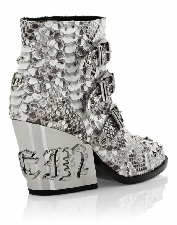 ● Metallic plated heel with embossed Plein Gothic