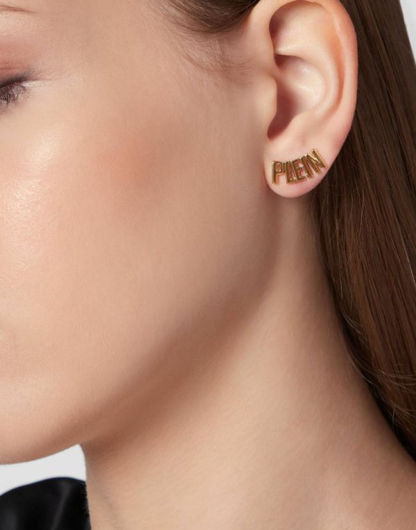 Women Philipp Plein Earrings | EARRINGS IP YELLOW GOLD PLEIN + SKULL LETTERING Gold quantity