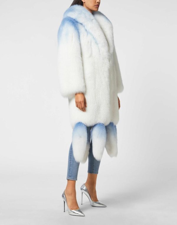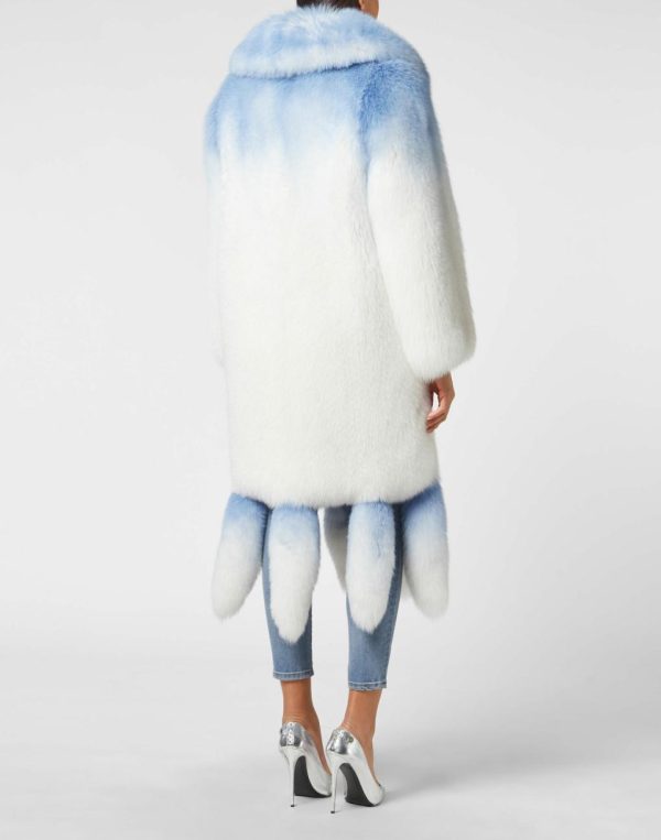 Women Philipp Plein Fur & Coats | LONG SILVER FOX COAT Multicolor