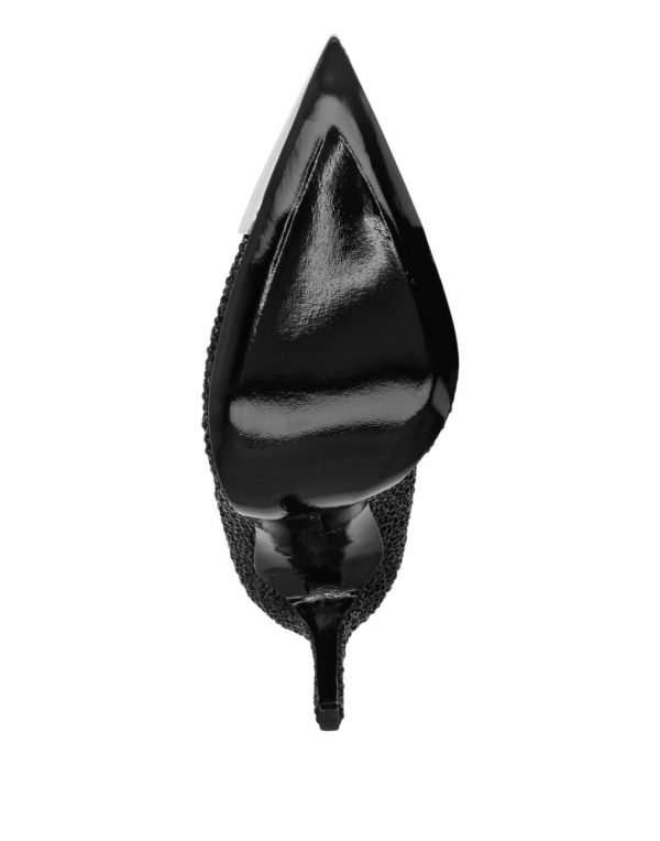Show your grit and fashionable side with these satin pumps. Check out the details.