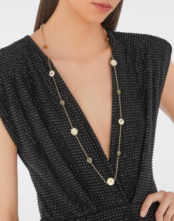 PLEIN MINI LOGO IP Yellow gold sautoir necklace