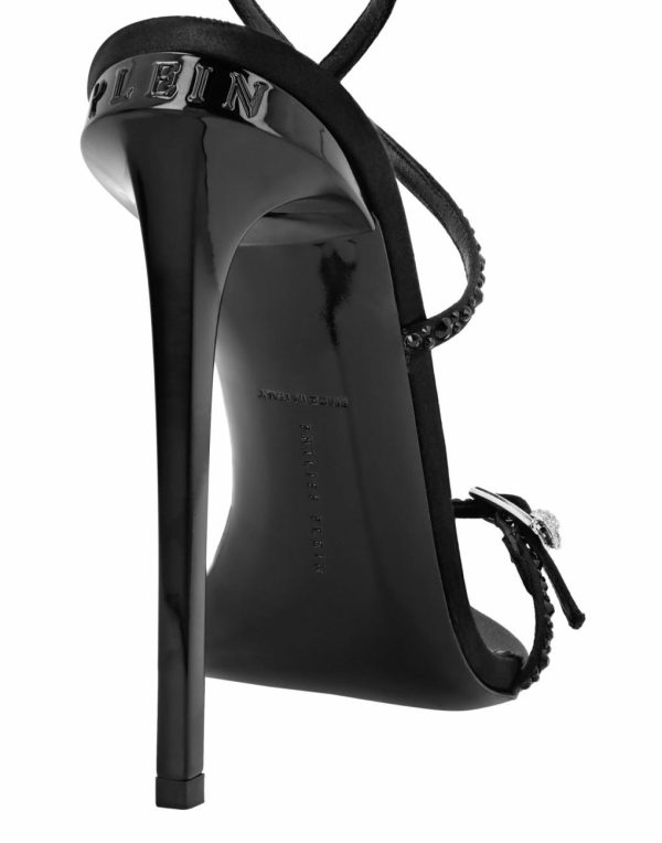Women Philipp Plein Sandals & Slides | Crossing High Heels Sandals 12 Strass Black