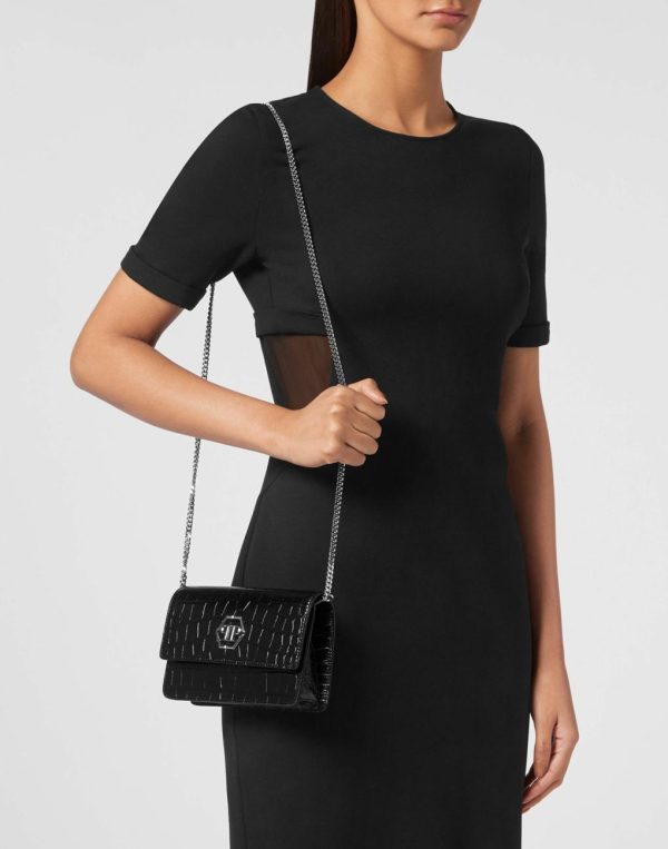 The style of Plein is perfectly told by the Superheroin shoulder bag, made of leather and perfect for any event. See the details.