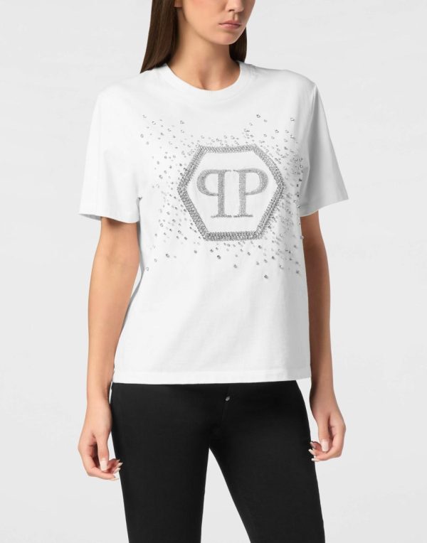 Women Philipp Plein T-Shirt & Sweatshirts | T-Shirt Man Fit Hexagon White