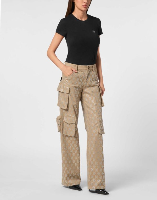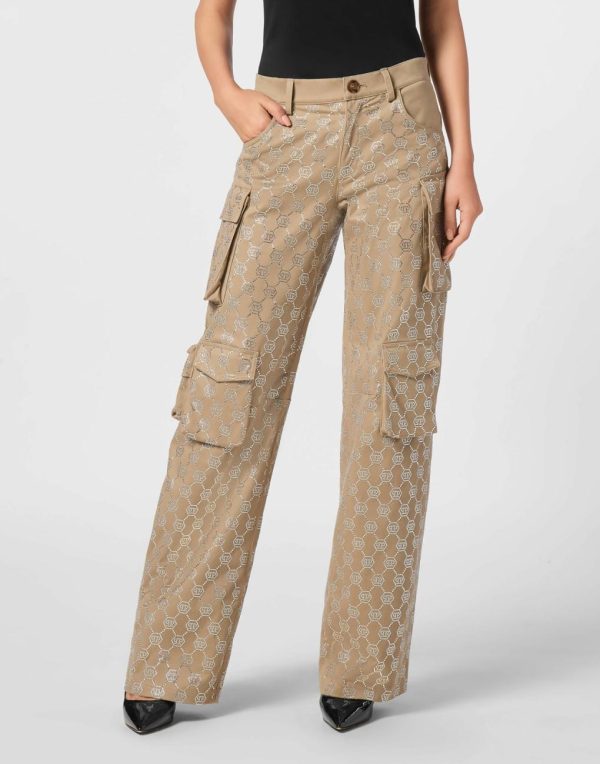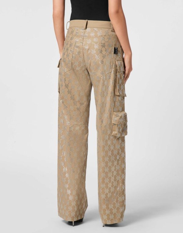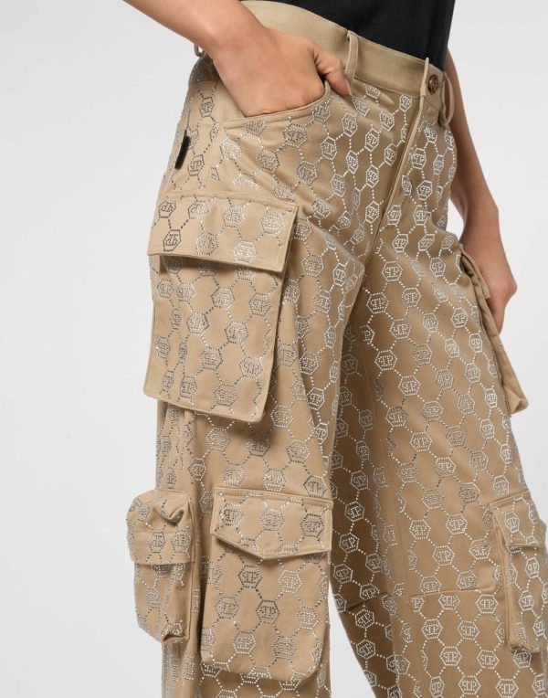 Women Philipp Plein Trousers & Shorts | Long Trousers Cargo Fit Strass Monogram Beige