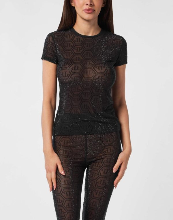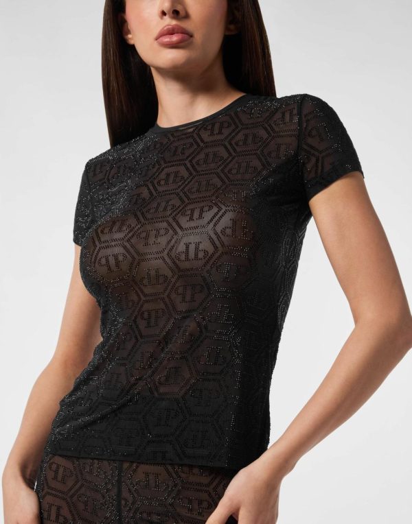 Elevate your evening style with this stunning jewel-embellished tulle t-shirt designed for making a statement. Discover the exquisite craftsmanship.