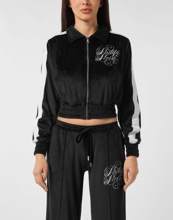 Elevate your athleisure wardrobe with this premium sweatshirt jacket featuring distinctive designer details that make a statement.