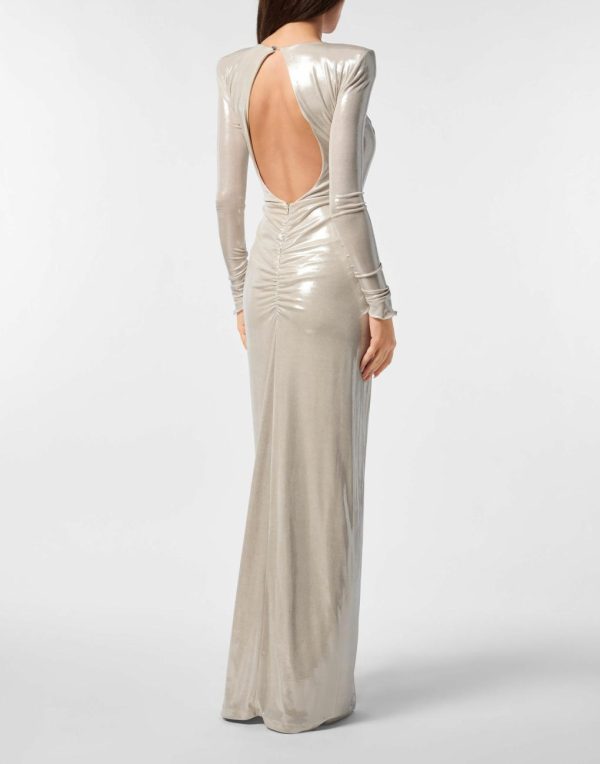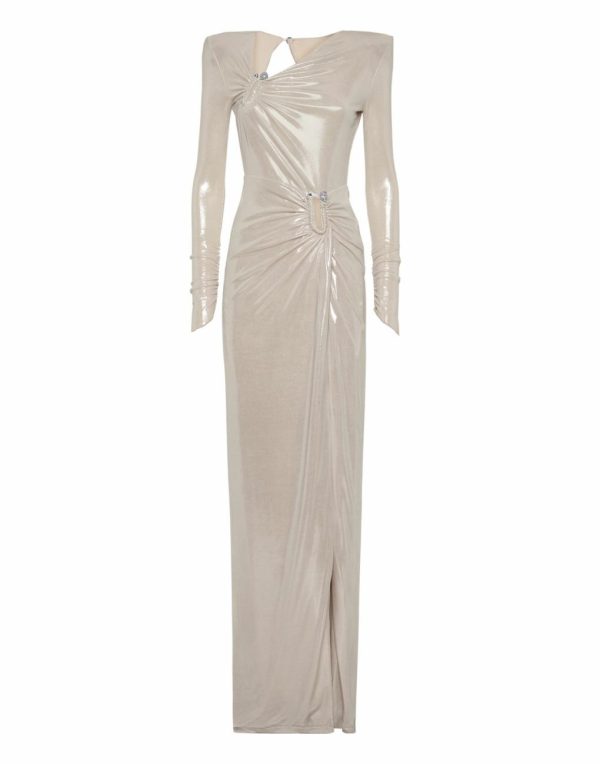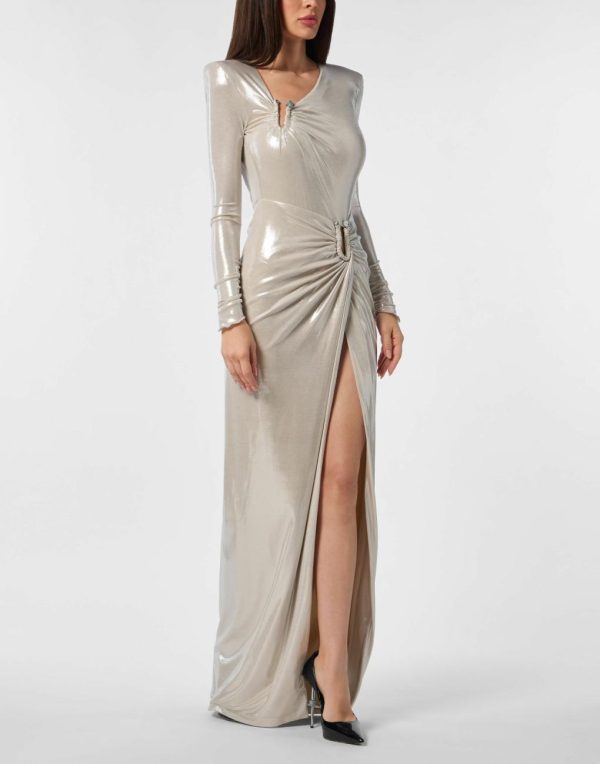 Make a stunning entrance with this glamorous shimmering evening dress that commands attention. Expert craftsmanship shines through in every detail.