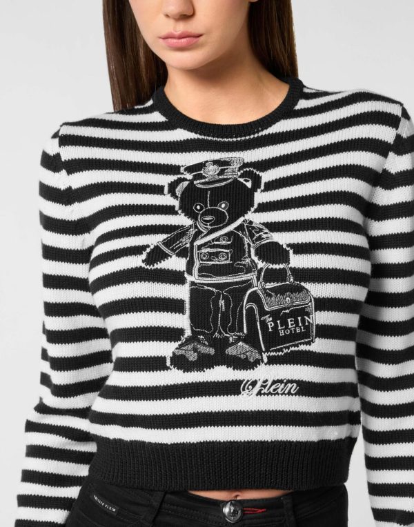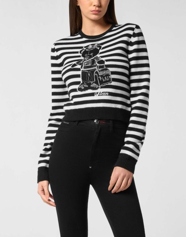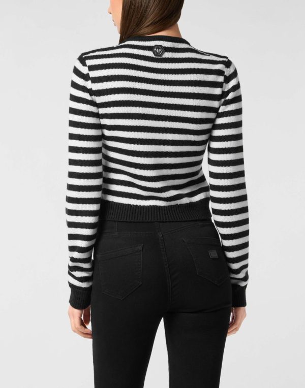 Discover this eye-catching striped knit crewneck pullover featuring premium craftsmanship.