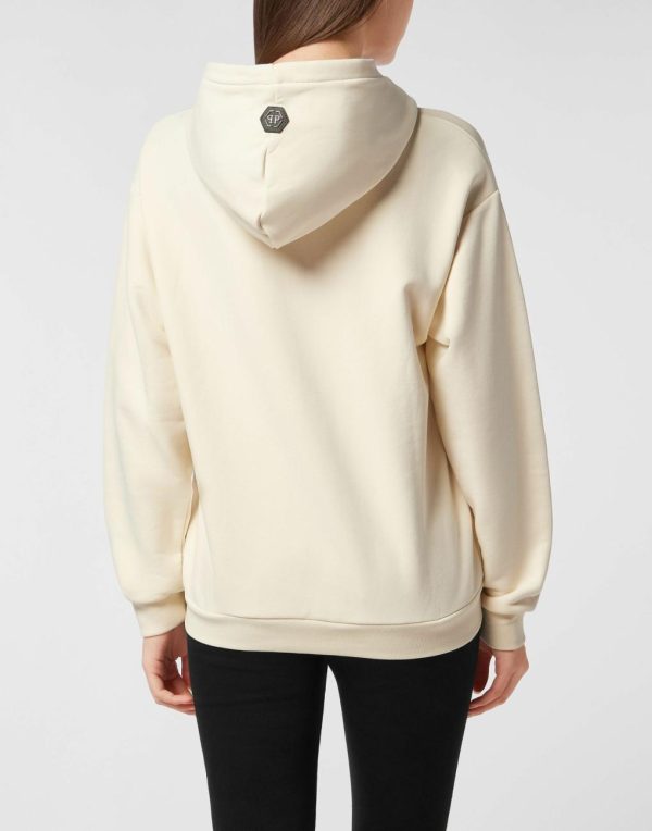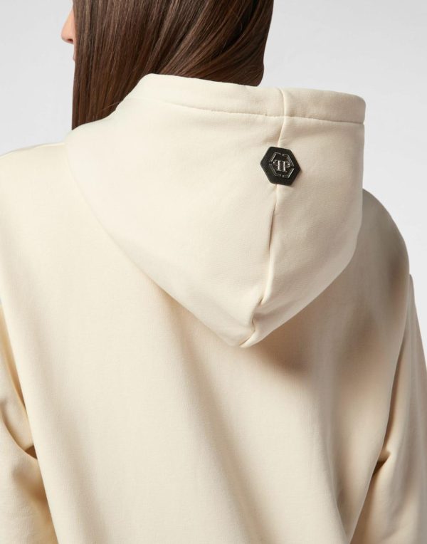Elevate your casual wardrobe with this statement-making hoodie that combines luxury comfort with eye-catching designer details.